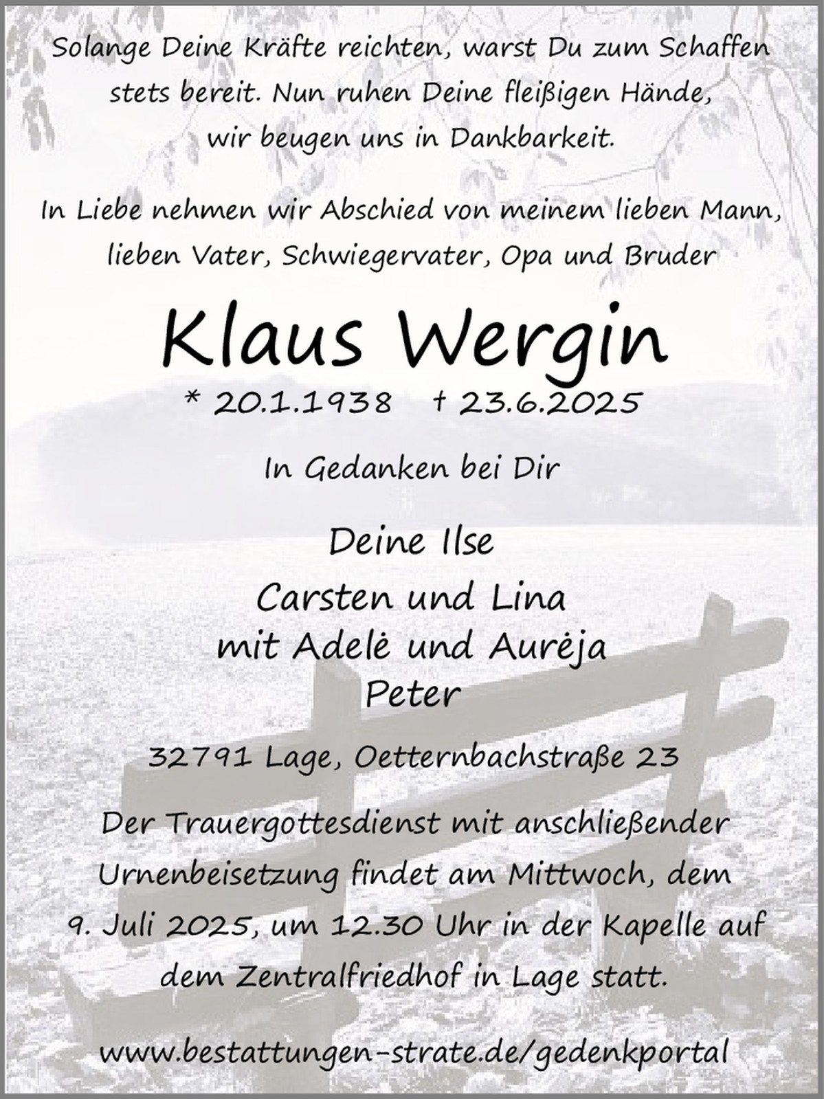 An dieser Stelle haben Sie die Möglichkeit, den Angehörigen Ihr Beileid auszusprechen. Hier finden Sie Platz für Ihre persönliche Anteilnahme.